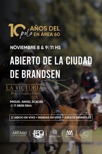 Fundado en 2015, Área 60 se ha transformado en un polo de atracción para quienes buscan combinar deporte, naturaleza y calidad de vida. Su predio, que también incluye golf, tenis, fútbol y actividades náuticas, ha sido sede de torneos regionales y encuentros sociales que fortalecen el vínculo entre Brandsen y el mundo del polo.