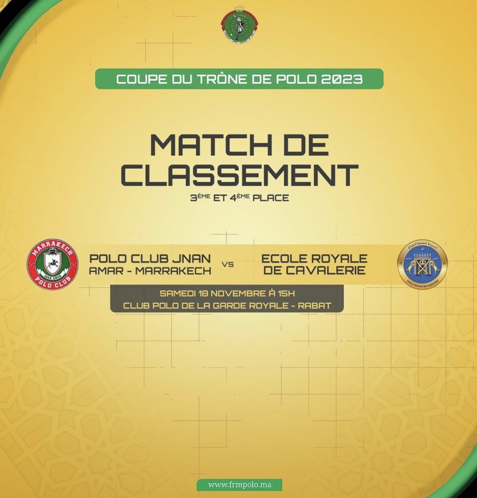 Los equipos a disputarse el lugar en el podio serán Polo Club Jnan Amar – Marrakech contra Ecole Royale de Cavalaire.